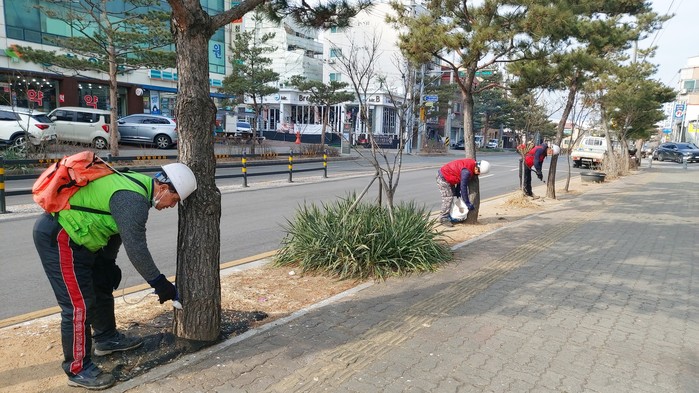 경기 수원시 장안구는 지역내 가로수·녹지대·쌈지공원 등 도시숲 51곳에 있는 소나무 1690주에 소나무 재선충병 예방을 위한 ‘나무주사 방제사업’을 완료했다. 사진은 최근 소나무 재선충병 예방을 위해 방제사업을 하고 있는 모습. (사진제공=장안구청)
