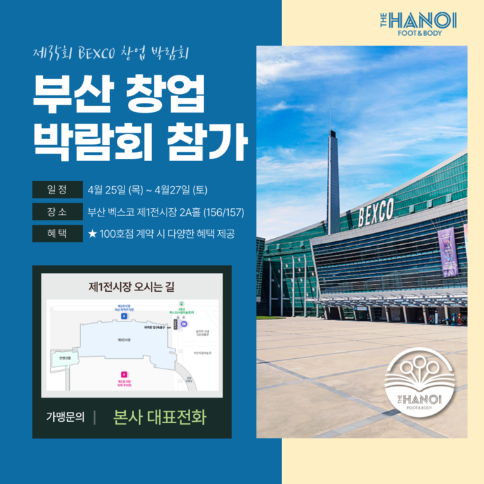 더하노이풋앤바디 본사에서는 “본 창업박람회를 통해 창업에 관심 있는 예비 창업주들에게 매장 운영 및 가맹 절차에 대한 상세한 정보를 전달할 예정이며, 본사에서 제공하는 오픈 지원 베네핏에 대해서도 안내할 예정”이라고 전했다.