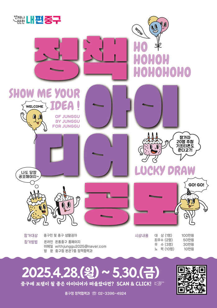 [시민일보 = 여영준 기자] 중구가 오는 5월30일까지 '2025 정책 아이디어 공모전'을 연다.