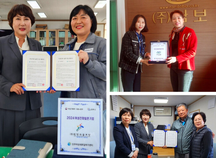 진주새일센터는 이들 업체와 상호 협약서를 교환한 뒤 협약을 상징하는 현판패를 전달했다. 주요 협약 내용으로는 △여성친화적 조직문화 조성, △일·가정 양립제도 추진, △직장 내 양성평등 실현 △기업에 필요한 전문인력 양성·발굴 △여성이 일하기 좋은 기업환경 조성 등이 포함됐다.