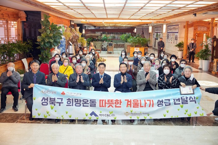 이승로 구청장은 “어려운 이웃을 위해 따스한 마음을 전해주신 노블레스타워에 감사드리며 노블레스타워 임직원과 입주자의 소중한 마음을 도움이 필요한 가정에 잘 전달되도록 세심히 살피겠다”고 말했다.