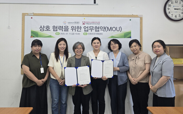 이번 협약은 인천서구가족센터에서 진행되었으며, 양 기관은 지역사회 내 가족 친화적 환경 조성을 위한 공동사업 추진에 뜻을 모았다.