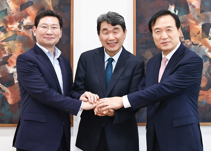 | ▲ 지난 7월 5일 용인대학교에서 이주호 사회부총리겸 교육부장관과 임태희 경기도교육감을 만나 교육 현안을 논의한 이상일 용인특례시장 |