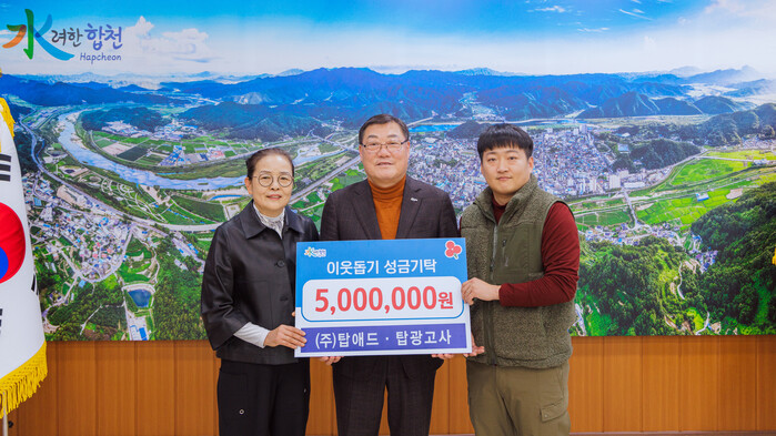 김윤철 합천군수는 “지역사회의 어려운 이웃을 생각하는 따뜻한 나눔 실천에 깊이 감사드리며, 전달해주신 성금은 추운 날씨에 따뜻한 손길이 필요한 이웃에게 소중히 전달하겠다.”고 감사의 마음을 전했다.