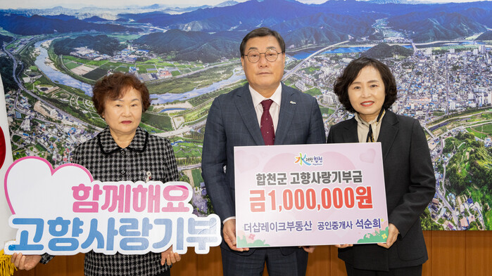 석순희 대표는 “고향사랑기부제라는 제도가 있는 걸 알게 되었고, 내 고향 합천의 발전을 기원하는 마음으로 기부하게 되었다”고 말했다.