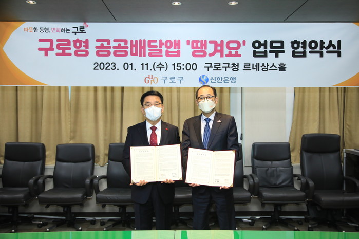 [시민일보 = 박준우 기자] 구로구(구청장 문헌일)가 소상공인에 대한 경영 지원과 구민의 지출 부담 완화를 위해 최근 신한은행 공공배달앱 '구로 땡겨요' 업무 협약을 체결했다고 12일 밝혔다.