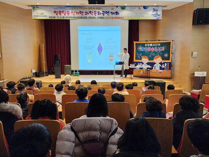 [김천=박병상 기자] 경북 김천시는 지난 16일부터 17일까지 2일간 김천녹색미래과학관에서 2천여 명의 어린이와 부모님들이 참여한 가운데 「알쏭달쏭 신기한 과학문화공연」을 개최했다.