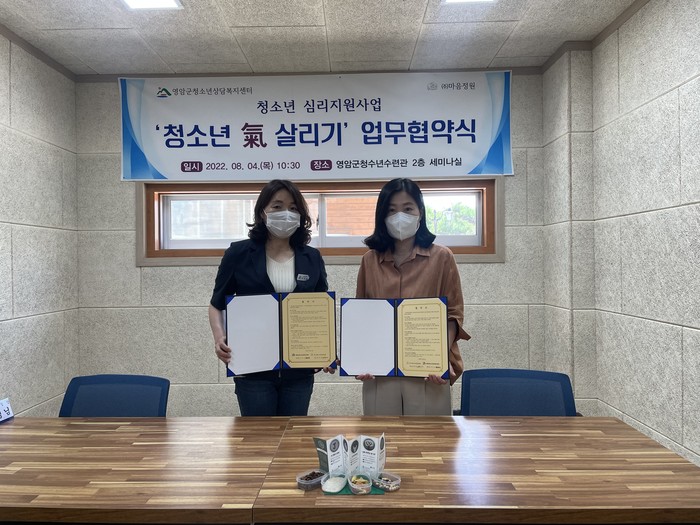 [영암=정찬남 기자] 전남 영암군 청소년상담복지센터는 지난 4일 상담복지센터에서 청소년 심리지원사업 추진을 위해 주식회사마음정원과의 청소년 氣(기) 살리기 업무협약을 체결했다고 밝혔다.