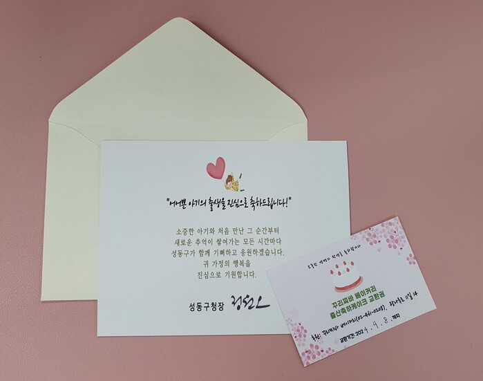 | ▲ 송정동 출산축하카드. (사진=성동구청 제공) |
