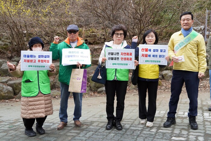 이승로 구청장은 “개인의 부주의가 큰 산불로 이어질 수 있고 특히 성북구는 수려한 숲이 함께하는 도시인 만큼 주민과 등산객의 산불예방에 대한 적극적인 참여와 관심이 절실하다”면서 “앞으로도 유관기관과 협력해 안전한 산림도시를 위한 노력을 이어가겠다”고 밝혔다.
