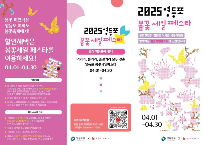 봄꽃 할인 행사는 8일부터 12일까지 열리는 여의도 봄꽃축제와 연계해 오는 30일까지 진행된다. 봄꽃의 아름다움과 함께 지역 맛집, 카페 등에서의 특별 할인 혜택을 더해 봄꽃축제를 더욱 풍성하게 즐길 수 있도록 한다.