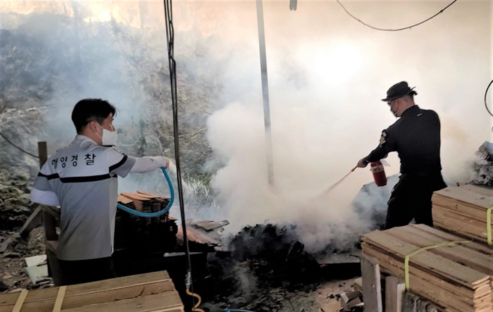 이어 출동한 소방 세력과 합동으로 화재진압에 나섰으며, 다행히 큰 불길은 이날 오후 7시께 대부분 잡혔다.