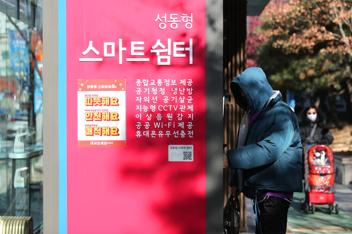 | ▲ 추운 겨울 성동형 스마트쉼터를 이용하는 주민들의 모습. (사진=성동구청 제공) |