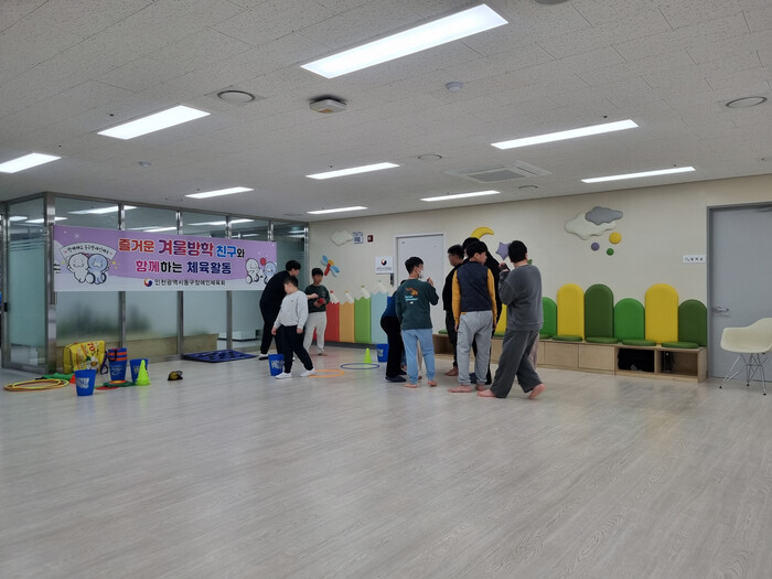 [인천=문찬식 기자] 인천 동구장애인체육회는 겨울방학을 맞은 장애 학생을 대상으로 송림골 꿈드림센터에서 신나는 생활체육교실을 운영한다고 밝혔다.