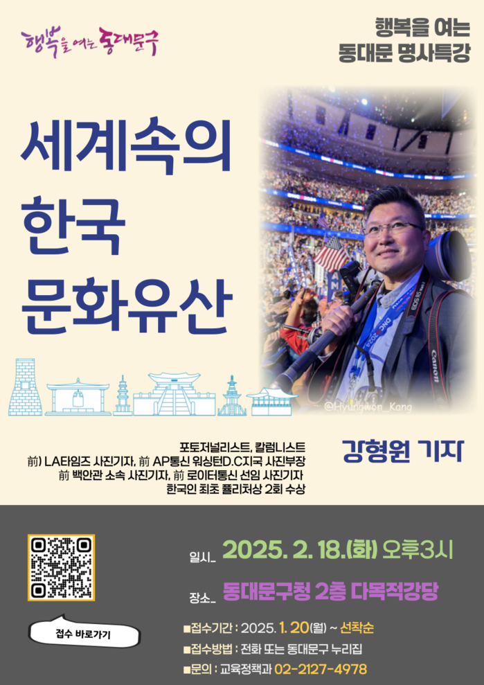 [시민일보 = 이대우 기자] 동대문구(구청장 이필형)가 오는 18일 ‘2월의 명사 특강’을 실시한다.
