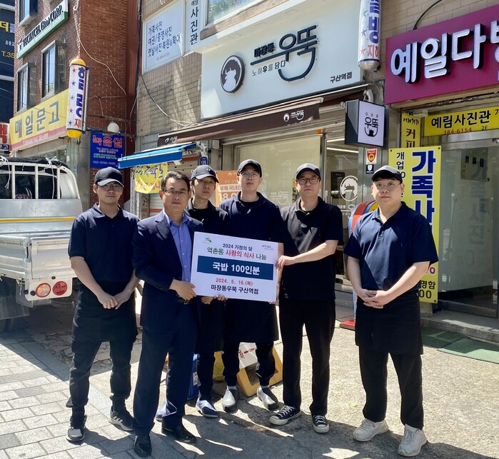 [시민일보 = 이대우 기자] 서울 은평구(구청장 김미경) 역촌동은 마장동 우뚝 구산역점에서 최근 가정의 달을 맞아 국밥 100인분을 후원했다고 밝혔다.