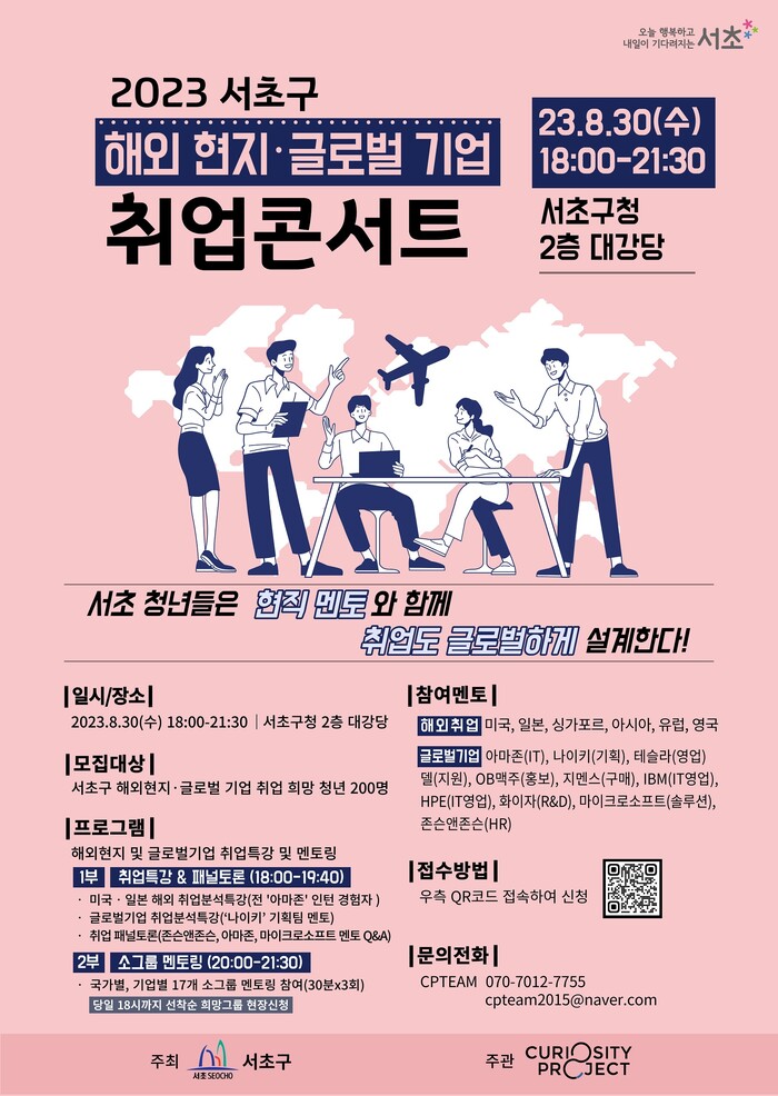 [시민일보 = 이대우 기자] 서초구(구청장 전성수)가 오는 30일 구청 대강당에서 해외 현지 및 국내 글로벌기업 취업을 희망하는 청년들을 위해 ‘해외현지·글로벌기업 취업콘서트’를 구청 대강당에서 개최한다.