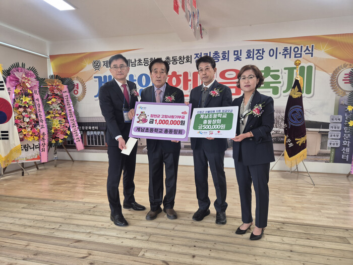 13일 초계 계남초등학교 강당에서 열린 제28회 총동창회 개회식 현장에서 황두열 회장은 고향사랑기부금 100만 원과 산불 피해를 입은 산청군 이재민을 위한 성금 50만 원을 기탁했다.