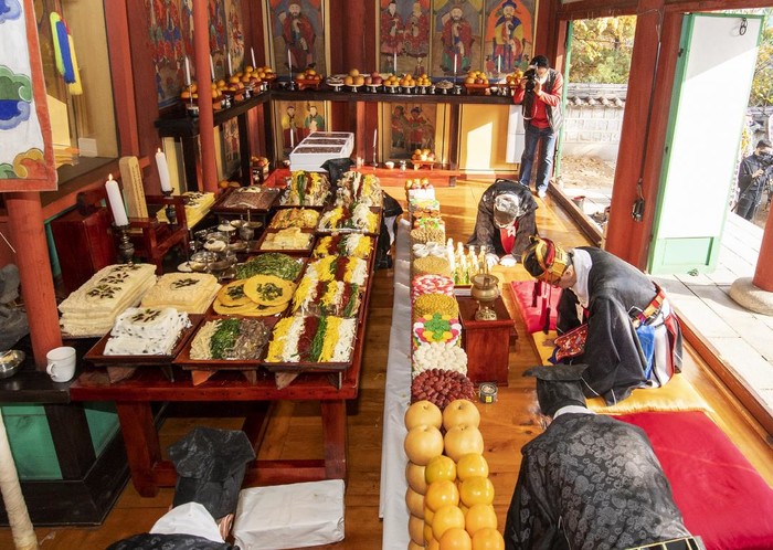 성장현 서울 용산구청장이 최근 용문동 남이장군 사당(효창원로 88-10)에서 열린 ‘제39회 남이장군 사당제’에 초헌관으로 참석했다. 사진은 성 구청장(오른쪽 가운데)이 제39회 남이장군 사당제에 참석해 제례를 올리고 있는 모습. (사진제공=용산구청)