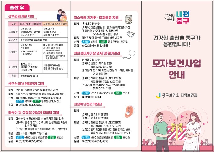 자세한 문의는 중구보건소 지역보건과 모자보건팀으로 하면 된다.