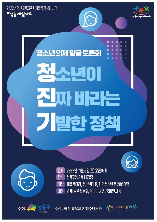 | ▲ 성동구_청소년의제 발굴 토론회_포스터. (사진제공=성동구청) |