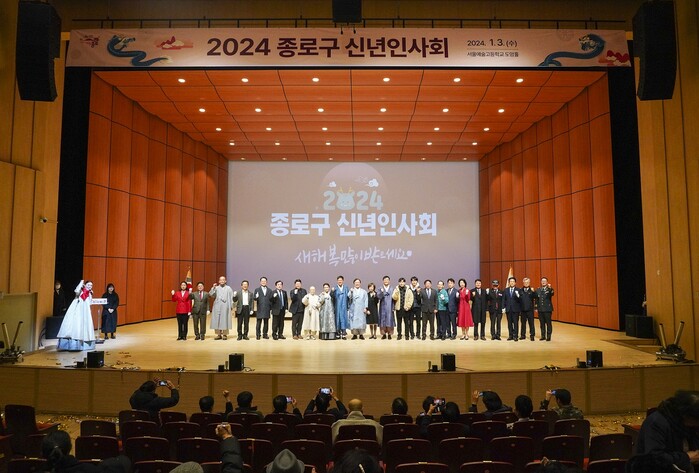 [시민일보 = 이대우 기자] 서울 종로구(구청장 정문헌)가 3일 서울예술고등학교(평창문화로 70)에서 '2024년 종로구 신년인사회'를 개최했다.