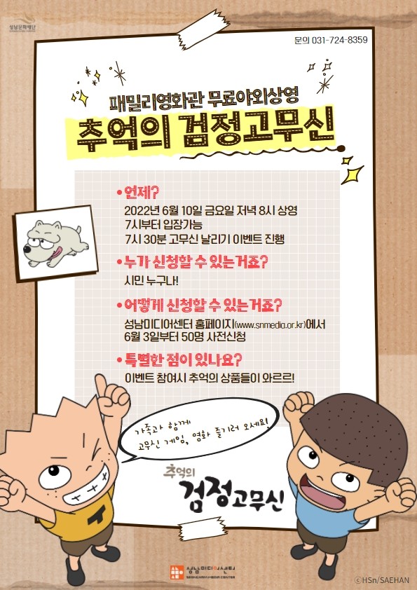 성남미디어센터는 오는 6월 10일(금) 저녁 8시, 성남아트센터 내 큐브플라자 2층 야외 공간에서 애니메이션 ‘추억의 검정 고무신’을 상영한다. 1960년대를 배경으로 그 시절 가족과 이웃들의 이야기를 담은 애니메이션으로 추억을 선사할 예정이다.