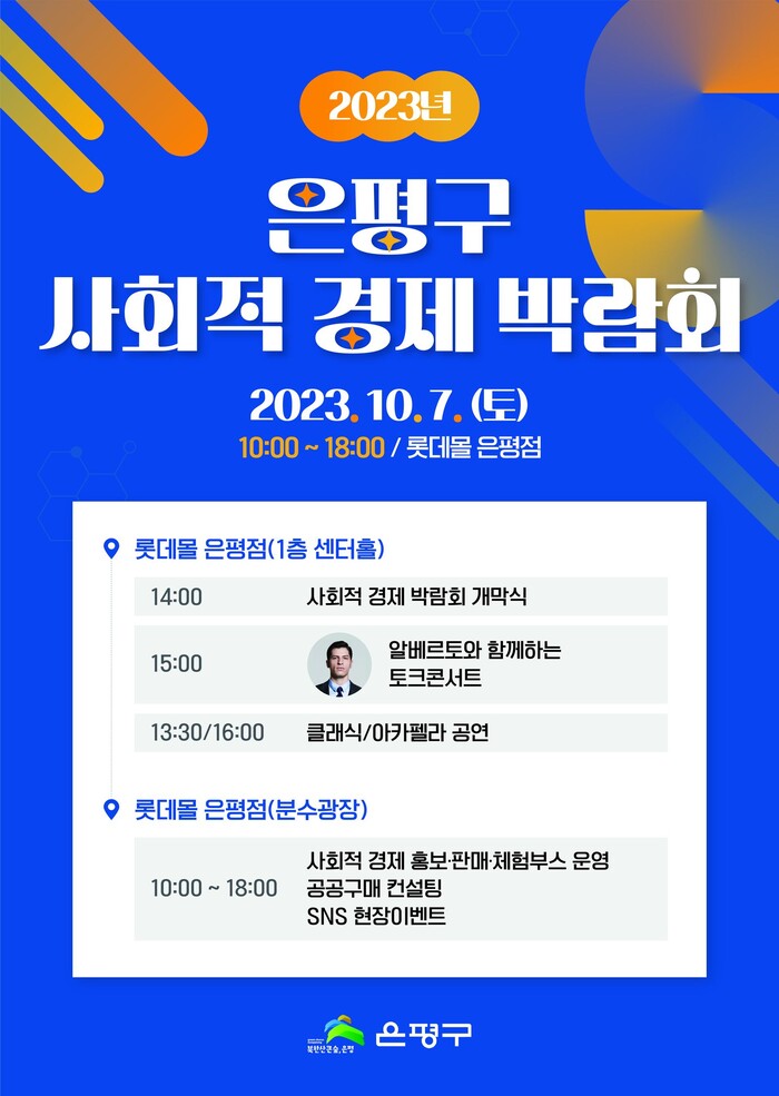 [시민일보 = 이대우 기자] 은평구(구청장 김미경)가 오는 7일 롯데몰 은평점에서 ‘2023년 은평구 사회적경제 박람회’를 개최한다.