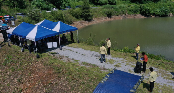 [김천=박병상 기자]경북 김천시(시장 김충섭)는 지난 27일(화) 감문면 남곡리에 있는 남곡 저수지에서 집중호우로 인한 저수지 범람 및 붕괴가 예상되는 상황을 가정한 비상 대처 훈련을 했다.