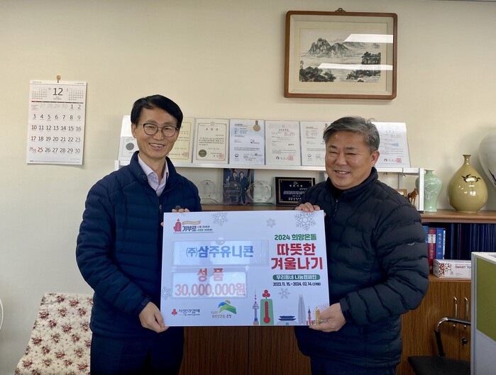㈜삼주유니콘은 2015년부터 꾸준히 이웃돕기에 참여해 사회공헌 활동에 지속적으로 참여하고 있다.