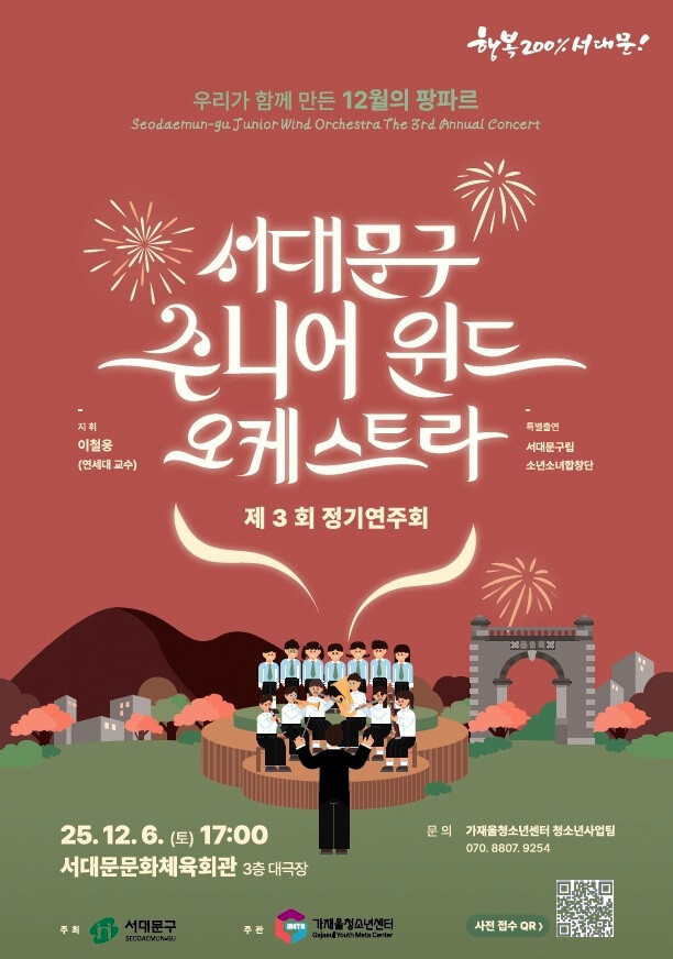‘서대문구 주니어 윈드 오케스트라’는 2023년 3월 서대문구의 정책적 지원을 기반으로 창단됐다. 구가 음악에 재능과 열정을 가진 청소년들에게 전문적이고 다양한 합주 및 무대 경험을 제공한다.