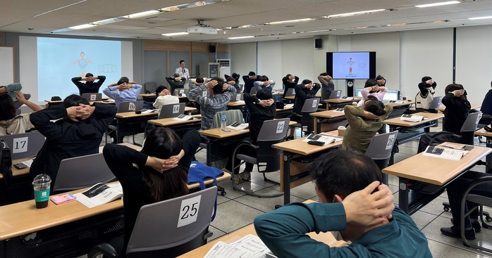 허리디스크(요추추간판탈출증)와 일자목증후군 예방을 위한 척추 체조도 소개해 모든 강연 참석자들이 함께 허리와 목을 풀어보는 시간을 가졌다.