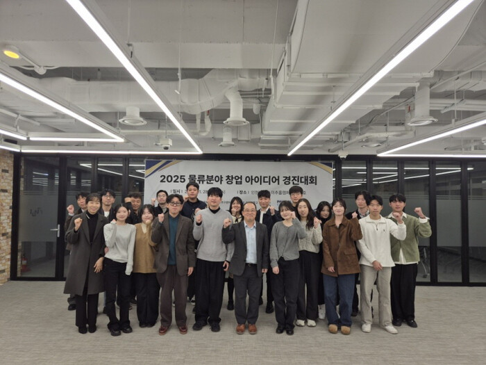| ‘2025 물류 분야 창업 아이디어 경진대회’ 참가자들이 파이팅을 외치고 있다. (사진=인천대) |