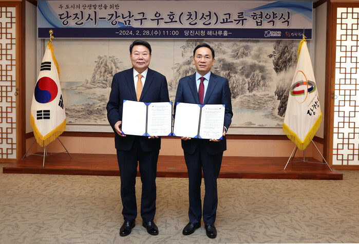 [시민일보 = 이대우 기자] 서울 강남구(구청장 조성명)가 충남 당진시와 최근 당진시청에서 친선결연을 체결하고, 대한민국 미래를 이끄는 도시로 발전하기 위해 상호 협력하기로 했다.
