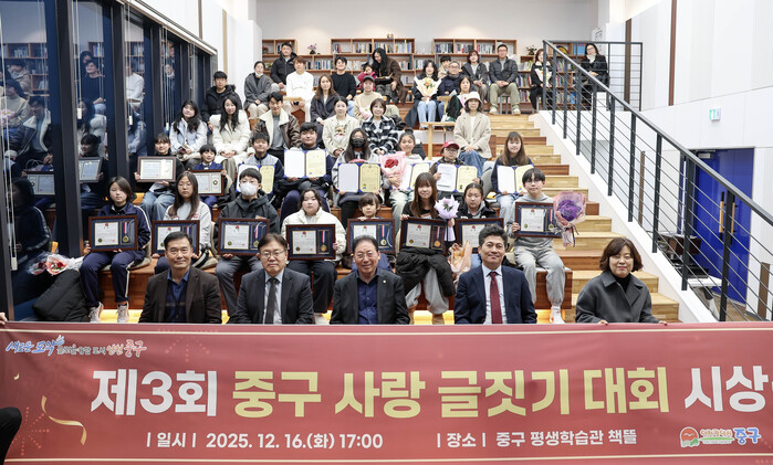 한편, 이번 대회 입상작들은 중구 소식지 ‘두드림 톡’을 통해 공개될 예정이며, 학생들의 순수하고 감동적인 이야기를 구민들과 공유할 예정이다.