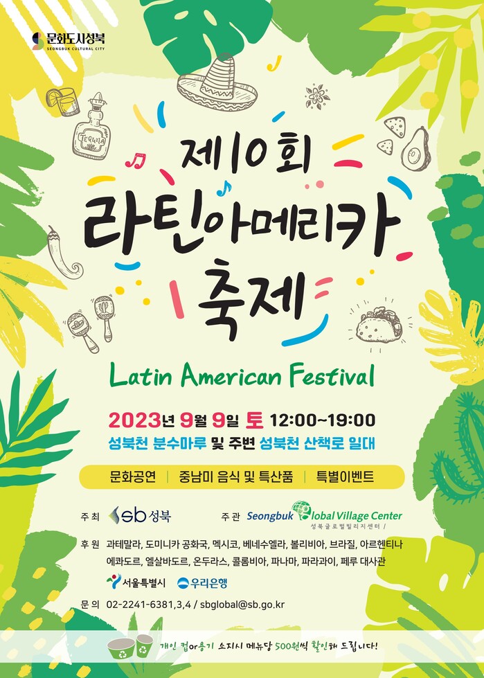[시민일보 = 홍덕표 기자] 성북구(구청장 이승로)가 오는 9일 토요일 성북천 분수마루와 성북천 일대에서 '라틴아메리카 축제'를 개최한다.