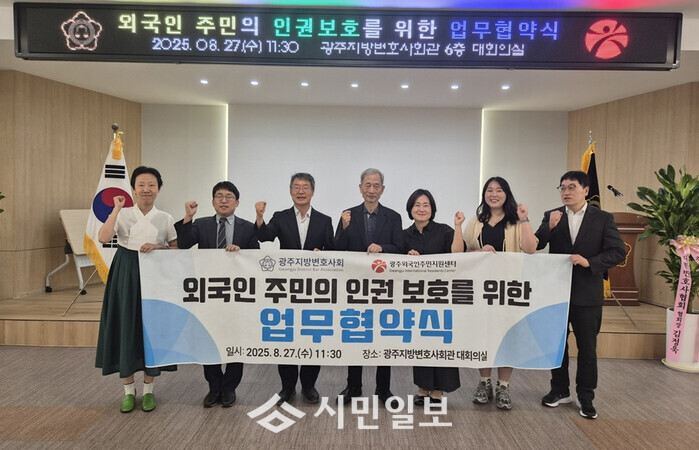 광주광역시(시장 강기정)는 27일 광주지방변호사회관에서 광주외국인주민지원센터와 광주지방변호사회 이주민법률지원단이 업무협약을 체결했다고 밝혔다.