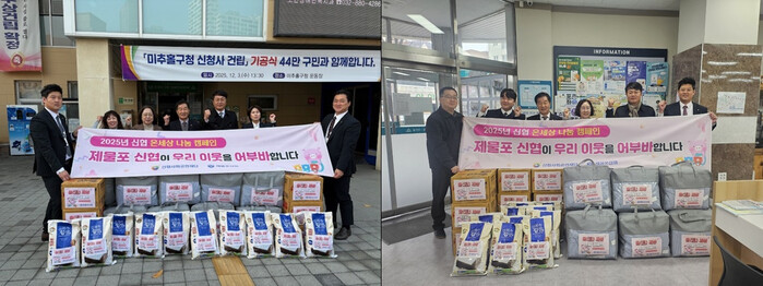 [인천=문찬식 기자] 인천 미추홀구 제물포신협(이사장 이명진)은 지난 24일과 25일 도화2·3동(동장 이선자), 숭의1·3동(동장 하태숙)에 관내 취약계층을 위한 겨울 이불 15채, 라면(40개입) 12박스, 쌀(10kg) 10포를 각각 전달했다.