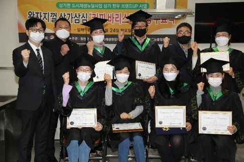 지난 1월 3일부터 시작한 교육은 1월 24일까지 총 10회 과정으로 운영됐고 최종적으로 15명이 교육수료와 함께 바리스타 2급 자격증을 취득했으며, 이번 교육 과정에 참석한 수료생들은 향후 삼가면 도시재생 뉴딜사업으로 조성될 삼가 이야기 카페 운영 인력으로 적극 참여할 계획이다.