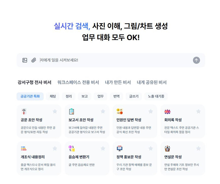 | ▲ 강서형 AI 업무지원 플랫폼 메인화면. (사진=강서구청 제공) |