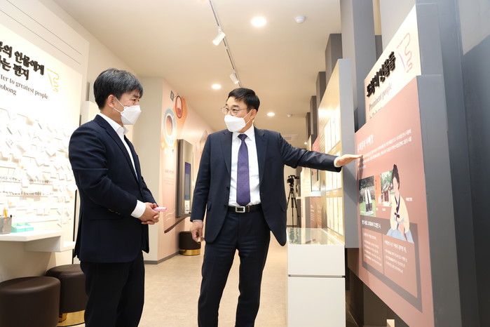 | ▲ 이동진 구청장(오른쪽)이 편지문학관을 둘러보고 있는 모습. (사진제공=도봉구청) |