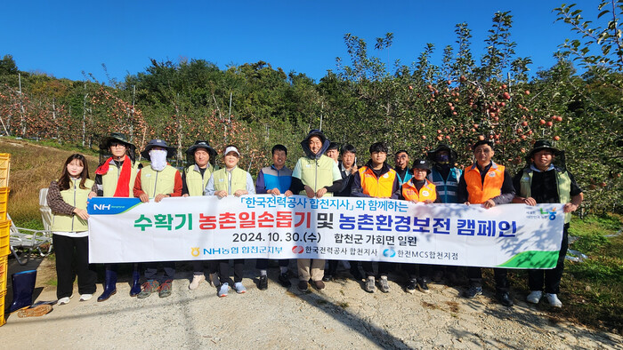 이날 일손돕기에는 NH농협 도기문 합천군지부장, 한국전력공사 최영일 지사장, 한전MCS 합천지점 김광일 지점장을 비롯한 합천 지역 내 농협 및 유관기관 임직원 등 20여 명이 참여해 사과 수확 작업을 하였을 뿐만 아니라 주변 환경정화를 위한 플로깅 캠페인 및 농촌폐비닐, 영농폐자재를 수거하는 영농폐기물 수거캠페인도 동시에 진행하였다.