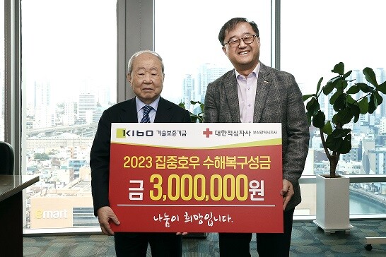 [부산=최성일 기자]기술보증기금(이사장 김종호, 이하 ‘기보’)은 올해 집중호우 등으로 어려움을 겪고 있는 지역 주민들을 돕기 위해 대한적십자사 부산지사에 헌혈증과 성금을 기부했다고 18일(월) 밝혔다.