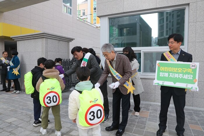 이들은 ▲횡단보도 앞 일단 멈춤 ▲어린이보호구역 안전 속도 준수 ▲1단 멈춤, 2쪽 저쪽, 3초 동안, 4고 예방 등 운전자와 보행자가 지켜야 하는 교통안전 수칙을 집중적으로 홍보했다.