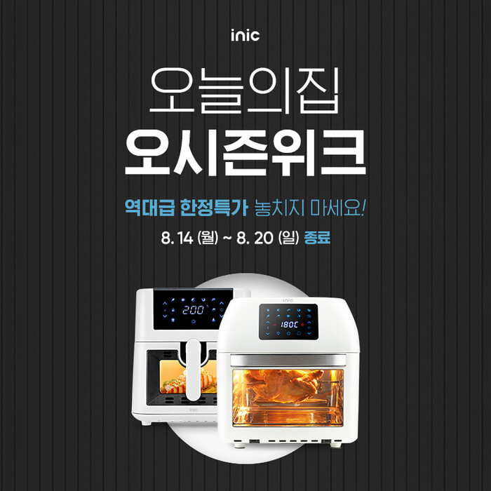 국내 가전 브랜드 아이닉은 에어프라이어 2종이 오늘의집에서 주최하는 쇼핑 기획전 'O! 시즌위크(O! Season Week·오시즌위크)'에 금일부터 참여한다고 밝혔다. 오늘의집을 대표하는 국내 최대 규모 쇼핑 프로모션인 오시즌위크에서는 오는 20일까지 아이닉 제품을 최대 56% 할인된 가격에 구매 가능하다.