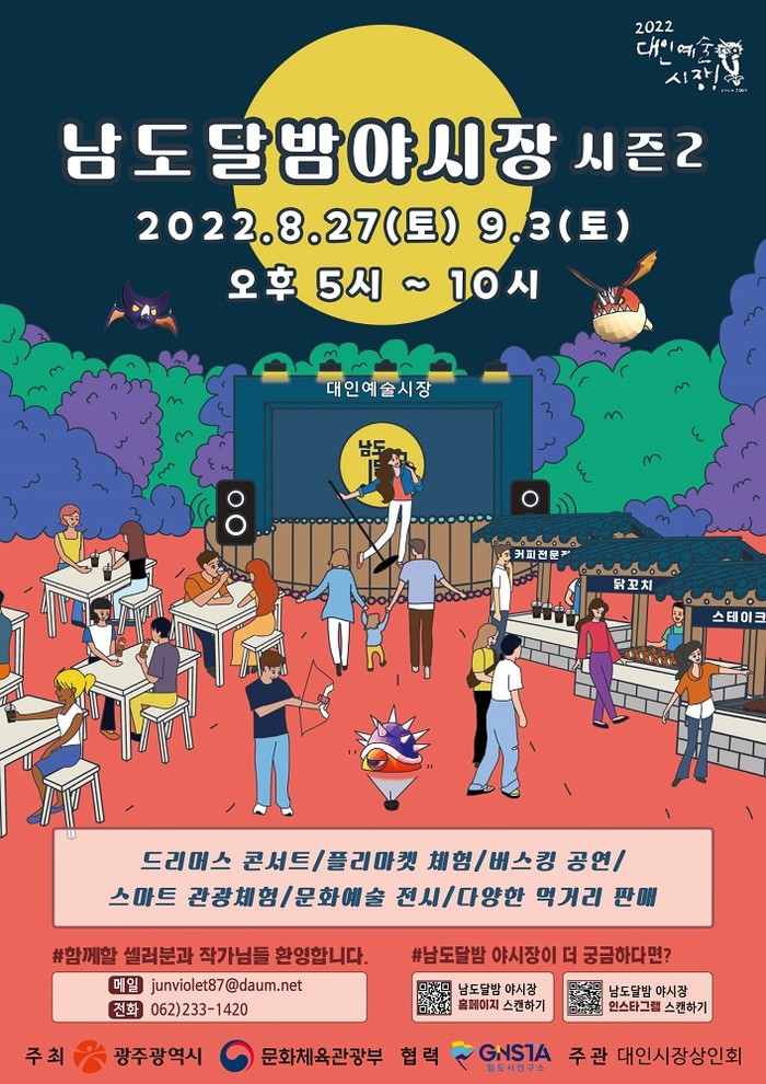 ‘남도달밤야시장’ 시즌2는 오는 27일과 9월3일 총 2회 진행하며, 운영시간은 오후 5시부터 오후 10시까지 운영된다.
