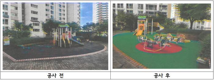 | ▲ 아파트단지 어린이놀이터 시설 개선 전후 모습. (사진=구로구청 제공) |