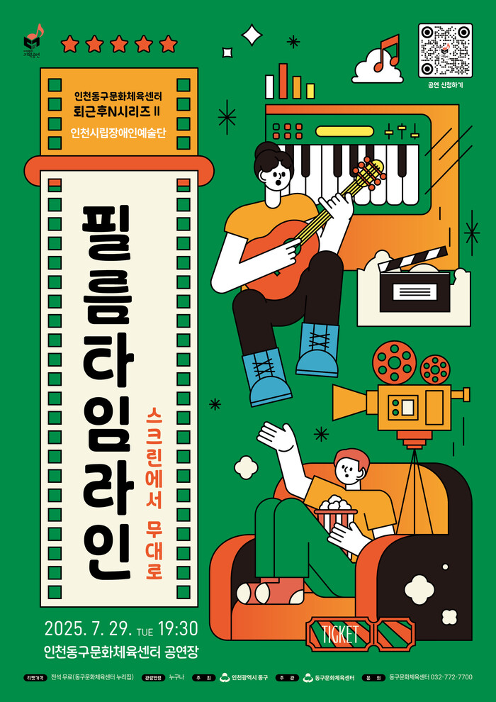 [인천=문찬식 기자] 인천 동구문화체육센터(구청장 김찬진)는 오는 29일 오후 7시30분 퇴근후N시리즈의 두 번째 무대가 열린다고 밝혔다. 인천시립장애인예술단이 선보이는 이번 공연은 명작 영화 속 OST를 연주·영상·퍼포먼스로 다채롭게 풀어내 익숙하면서도 신선한 감동을 선사할 예정이다.
