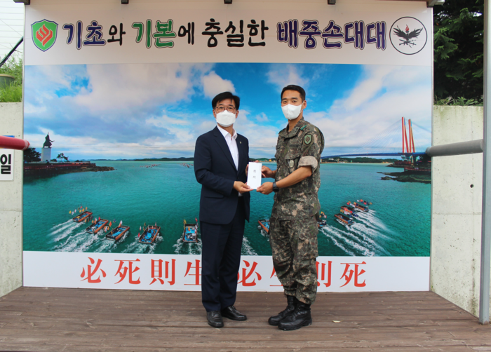 | ▲ 전남서부보훈지청, 호국보훈의 달 맞아 진도대대 육군장병들에 위문금 전달 |