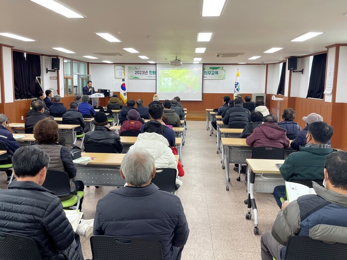 ‘친환경농어업 육성 및 유기식품 등의 관리·지원에 관한 법률’에 따라 친환경농업 인증(신규·갱신)을 받고자 하는 농업인은 친환경농업 의무교육을 2년마다 1회 2시간 이상 이수해야 한다.
